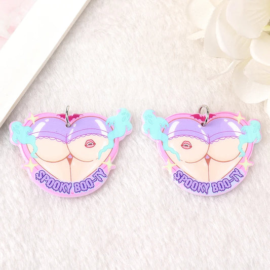 6pcs Halloween Pastel Goth Ghoul Boss Charms Acrylic Spooky Booty Pendant Colorful Jewlery Findings For Earring Necklace Diy