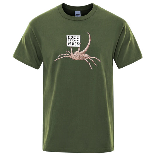 Alien Free Mask Printed T Shirt Men Horror Scorpion T-Shirts Summer Cotton Breathable Tee Clothing Hip Hop Cotton Streetwear Man