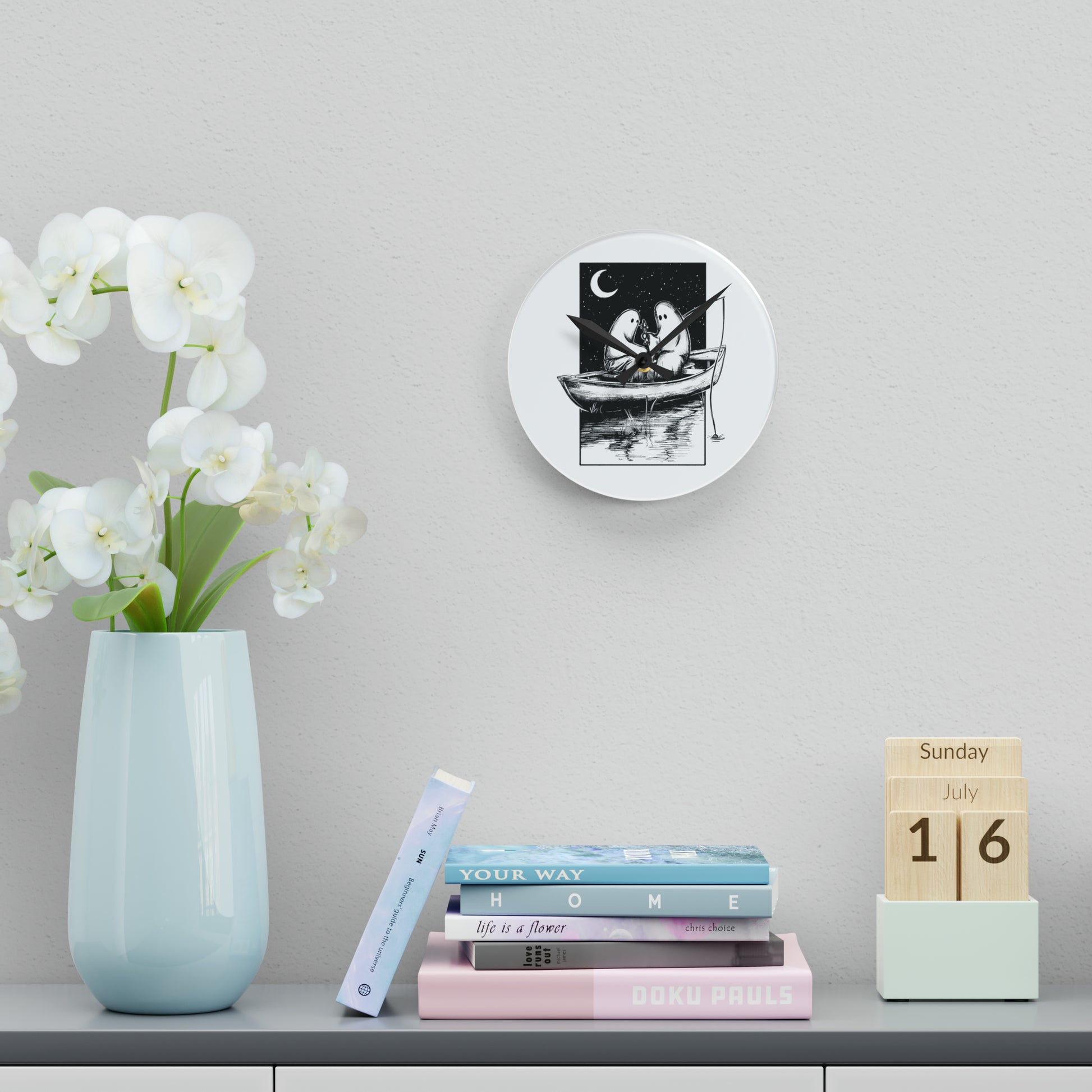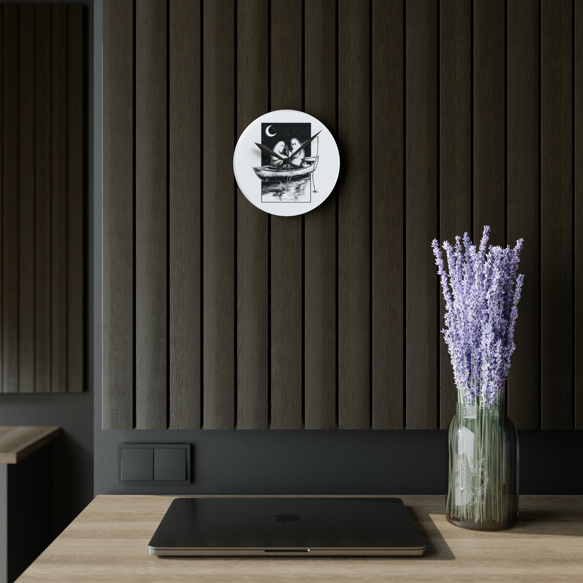 These clocks come in two shapes (round and square) and two sizes. Each clock has a keyhole at the back for easy hanging on a wall. They're made from an acrylic material that looks like glass but is more durable and sturdy.